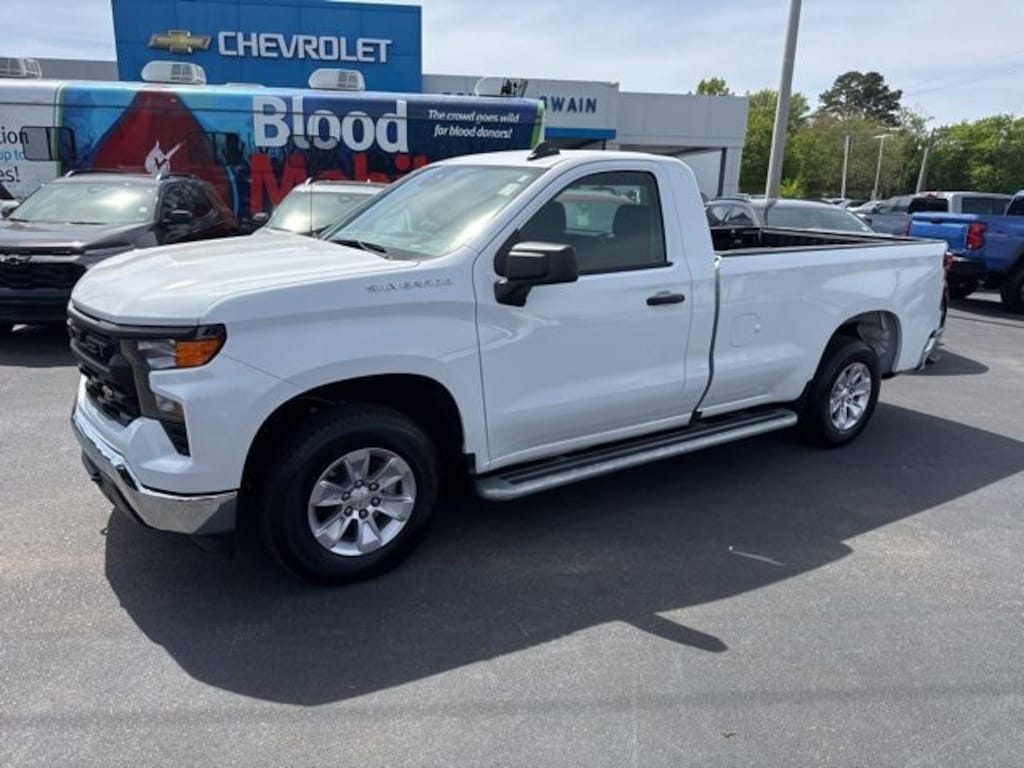 170 Amp Alternator, 2-Speaker Audio System, 220 Amp Alternator, 3.5 Monochromatic Display Driver Info Center, 4-Way Manual Driver Seat Adjuster, 4-Wheel Disc Brakes, 40/20/40 Front Split Bench Seat, ABS brakes, Air Conditioning, Apple CarPlay/Android Auto, Auto High-beam Headlights, Automatic Emergency Braking, Auxiliary External Transmission Oil Cooler, Black (Semi-Gloss) Front Bumper, Black (Semi-Gloss) Rear Bumper, Bluetooth® For Phone, Brake assist, Compass, Delay-off headlights, Driver door bin, Dual front impact airbags, Dual front side impact airbags, Electronic Cruise Control, Electronic Stability Control, Emergency communication system: OnStar, External Engine Oil Cooler, EZ Lift Power Lock & Release Tailgate, Following Distance Indicator, Forward Collision Alert, Front anti-roll bar, Front Center Armrest w/Storage, Front Chrome Bumper, Front Frame-Mounted Black Recovery Hooks, Front Pedestrian Braking, Front reading lights, Front wheel independent suspension, Fully automatic headlights, HD Rear Vision Camera, Heated door mirrors, Heated Power-Adjustable Outside Mirrors, Illuminated entry, Inside Rear-View Mirror w/Tilt, IntelliBeam Automatic High Beam On/Off, Lane Keep Assist w/Lane Departure Warning, Locking Tailgate, Low tire pressure warning, Manual Tailgate Function w/No EZ Lift, Manual Tilt Wheel Steering Column, Occupant sensing airbag, OnStar Services Capable, Outside temperature display, Overhead airbag, Overhead console, Panic alarm, Passenger door bin, Passenger vanity mirror, Power door mirrors, Power Front Windows w/Driver Express Up/Down, Power Front Windows w/Passenger Express Down, Power steering, Power windows, Preferred Equipment Group 1WT, Premium audio system: Chevrolet Infotainment 3, Radio data system, Radio: Chevrolet Infotainment 3 System, Rear Chrome Bumper, Rear reading lights, Rear step bumper, Remote Keyless Entry, Remote keyless entry, Rubberized-Vinyl Floor Covering, SiriusXM Delete, Solar Absorbing Tinted Glass, Speed control, Speed-sensing steering, Standard Suspension Package, Standard Tailgate, Tachometer, Teen Driver, Tilt steering wheel, Tire Pressure Monitoring System, Traction control, Trip computer, Variably intermittent wipers, Vinyl Seat Trim, Voltmeter, Wheels: 17 x 8 Bright Silver Painted Aluminum, Wheels: 17 x 8 Ultra Silver Painted Steel, Wi-Fi Hot Spot Capable.